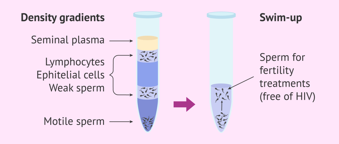 1.对刚刚取出的精液尽快用洗涤液去进行稀释,尽可能多的去除一些对精子有害的成分,包括精浆、死掉的精子、炎症细胞、抗精子抗体和细菌等。