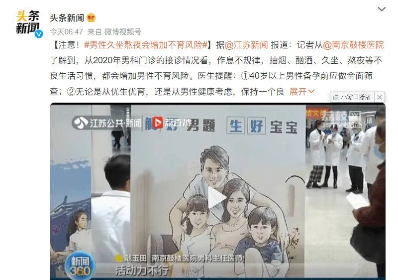 随着不孕不育家庭增多,很多报告指出现在的年轻人都有熬夜、久坐、生活作息时间不规律等习惯,医生提醒要达到优生优育的程度一定要有一个良好的生活习惯。