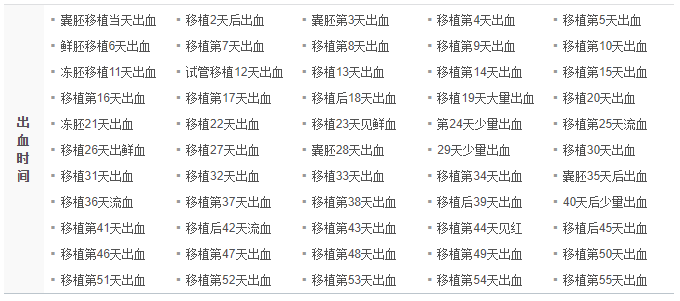 这段期间应要注意观察出血情况,以便做好应对措施,如果当天移植后出血量比较少可不必过于担心应继续观察,如果出血较多,持续时间较长,应去医院了解出血的部位,必要时行B超检查,看是否有宫腔内出血。