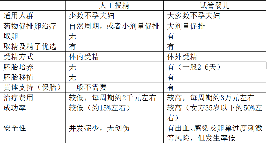 人工授精和试管婴儿治疗各有优缺点,除了男方取精和精子优选相同,其它方面均不相同。